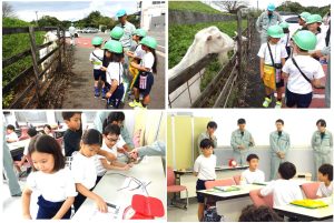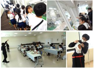 3年生の総合的な学習の時間では蜂屋について学習します。その中で蜂屋の工業についても学びます。今年も校区内の事業者の皆様に協力していただき、4つの工場を見学しました。3年生を4つのグループに分けて見学に行くので、見学する工場は一人一工場です。
