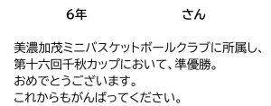 <表彰> 6年生女子(美濃加茂ミニバスケットクラブ所属) 第16回千秋カップ 準優勝