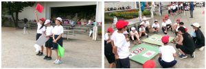 10月7日(火)の6時間目に運動会の係連携会を実施しました。高学年は、器具・ライン/決勝審判/招集誘導/出発/放送 等の係を受け持ちます。この日は実際に3年生と4年生が競技をして、そこで、各係の動きを確認しました。運動会では、こうした高学年の係の動きも見所の一つです。5.6年の高学年は運営面でも運動会を支えます。
