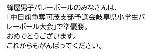 <表彰> 蜂屋男子バレーの皆さん 中日旗争奪可茂支部予選会岐阜県小学生バレーボール大会 準優勝