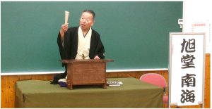今年も大阪から講談師の旭堂南海さんをお招きして、ふるさとの歴史である戦国時代の「堂洞合戦」を講談で聞きました。講談を聞くだけでなく、間違い探しや体験コーナーもあり、とっても楽しくふるさとの歴史を学ぶことができました。