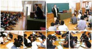 10月27日(月)に6年生がふるさと学習の一環で、歴史講談を聞きました(2時間目2組・3時間目1組)。