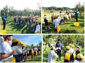 10月29日(水)に総合的な学習の時間で、堂上蜂屋柿について学んでいる3年生が、2回目の柿畑見学に出かけました。