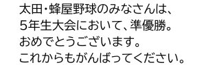 <表彰> 太田・蜂屋野球の皆さん 5年生大会 準優勝