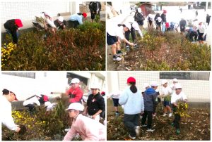 12月8日(月)に花壇閉め班が、「きれいなお花を見せてくれてありがとう」と感謝の気持ちも込めて苗を抜いていきました。