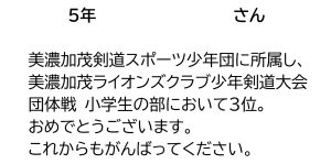 <表彰> 5年生男子(美濃加茂剣道スポーツ少年団所属)美濃加茂ライオンズクラブ少年剣道大会 団体戦 小学生の部 3位