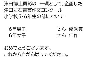 <表彰> 津田左右吉賞作文コンクール 小学校5・6年生の部 ...