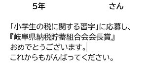 <表彰> 5年生女子 小学生の税に関する習字 岐阜県納税貯...