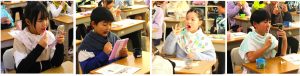 4年生のテーマは「でこぼこをピカピカにみがこう」です。口の中の歯並びにはでこぼこがあることを確認して、でこぼこがあってもきちんとみがく方法を教えていただきました。