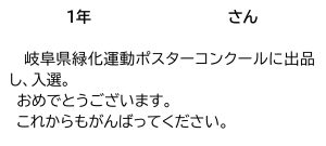 <表彰> 1年生男子 岐阜県緑化運動ポスターコンクール 入選