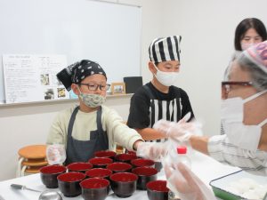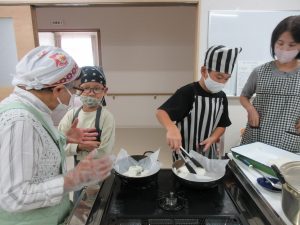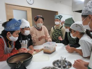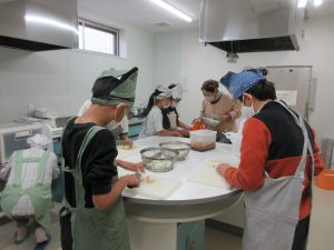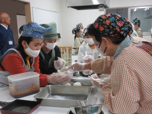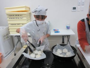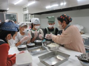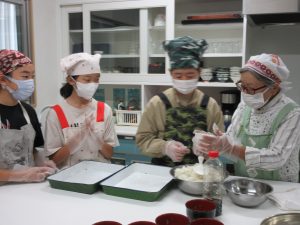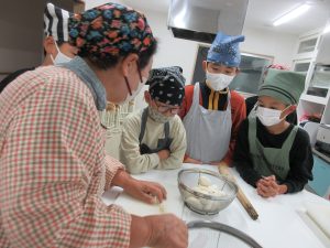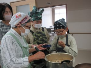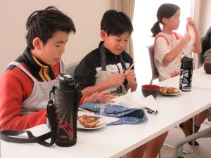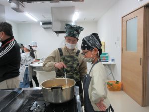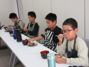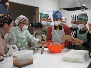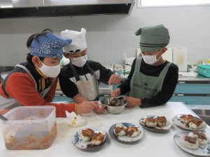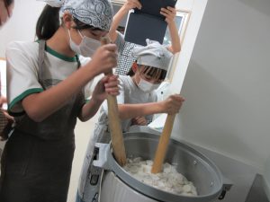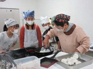 5年生では、総合的な学習の時間の学習として、伊深の食文化について学習を進めいています。今回は、伊深ごはん研究会のご協力をいただいて、伊深の郷土料理の作り方を教えていただきながら、一緒に調理しました。五平餅とけんちん汁を作りました。五平餅に使ったお米は、5年生が田植えをして先日稲刈りをした新米「あきさかり」を使いました。試食会では、お米作りでお世話になった皆さんをお招きして、楽しく一緒に食べました。とてもおいしく出来上がっていて、みんな満足そうでした。