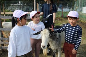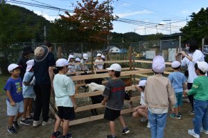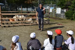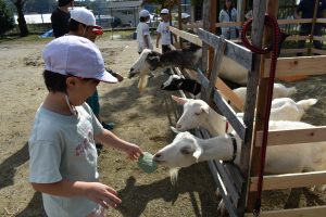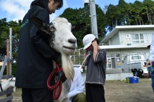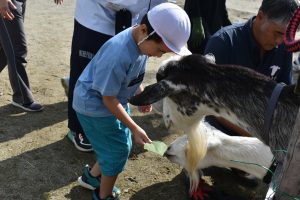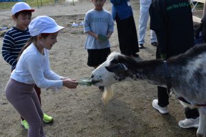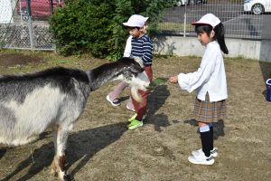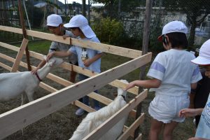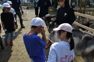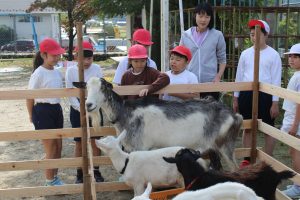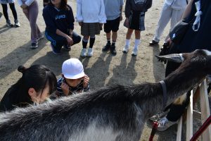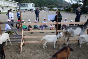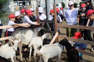 ヤギの除草隊として知られているFRUSICさんのご協力を得て、ヤギさんとのふれあい教室を行いました。子ヤギ7頭、大人のヤギ1頭が、伊深小学校に来てくれました。ヤギさんを知るためのクイズや心臓の音を聞く活動をしたり、エサやりの体験や頭や体を撫でる体験をしたりしました。ヤギさんたちは、とても人懐っこくて、かわいかったです。ヤギさんの体は温かく、心臓の音も人と同じようにどくどくしていました。ヤギさんも人と同じように体温があり、心臓も動いていて命ある動物だということを改めて感じることができ、命の大切さについて学ぶことができました。