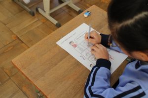 4年生の英語の学習では、食材の名前、今日はフルーツの名前に挑戦しました。ビンゴゲームを取り入れ、楽しみながらフルーツの名前を英語で覚えました。
