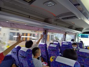 6年生の修学旅行当日を迎えました。全員元気に出発しました。現在、奈良に向けて、順調に進んでいます。バス内では、イントロクイズの真っ最中です。