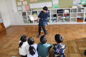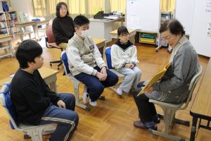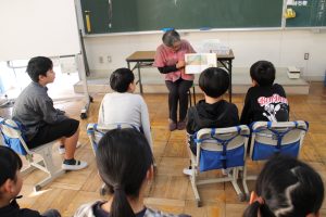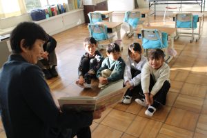 毎月、伊深読み聞かせサークルの皆様による読み聞かせを、朝活動の時間に行っていただいています。年内最後の読み聞かせが本日ありました。毎回、季節に合わせた本や思いを届けたい内容に合わせた本など、子どもたちの感性に訴えかけるような本を選んで読み聞かせをしてくださっています。毎回、子どもたちも絵本の世界に引き込まれています。