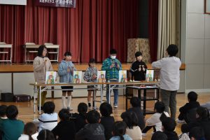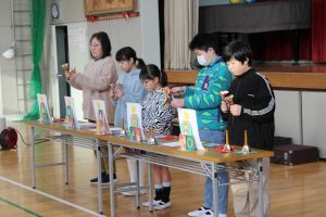 えがお学級では、ハンドベルの練習を積み重ねてきました。今回は、全校児童と保護者の皆さんの前で、発表会をしました。これまで練習してきた「ねこふんじゃった」「きらきら星」「オーラリ」「ジングルベル」「きよしこの夜」 の5曲を素敵なベルの音で演奏してくれました。