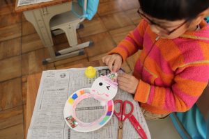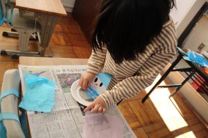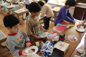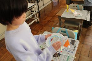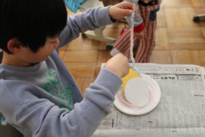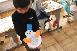 2年生の図工では、「雪だるまをつくろう」をテーマに、紙皿をベースにして、雪だるまの飾り物を作りました。今週行う予定の1年生とのクリスマス会のプレゼントにする予定です。