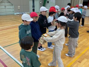 12月24日、1・2年生でクリスマス会をしました。レクリエーションやプレゼント交換をして、楽しい時間を過ごしました。