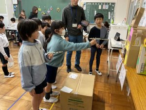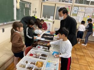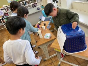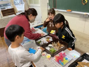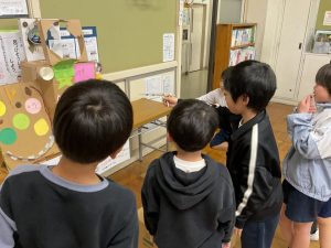 1年生では、生活科の時間に作ったおもちゃで、2年生を招待して「おもちゃまつり」を行いました。おもちゃのお店屋さんを開いて、2年生のみんなに楽しんでもらいました。