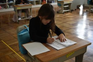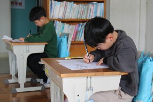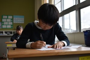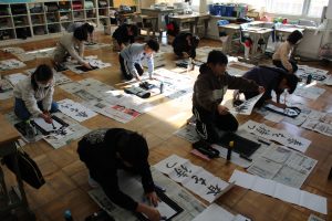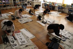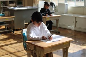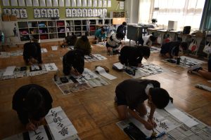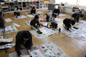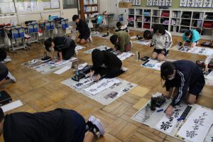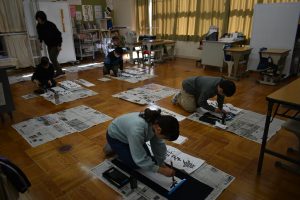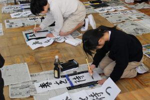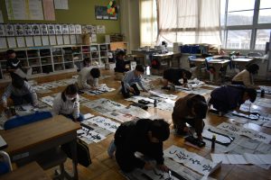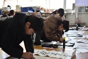 新春書き初め会を行いました。1・2年生は硬筆で、3年生以上は毛筆で、書きました。