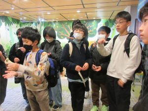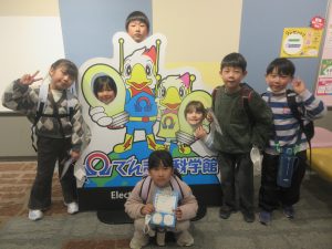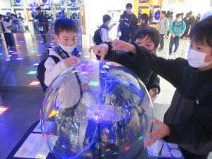 全校遠足で、でんきの科学館に行ってきました。オームシアターでは、ゲーム形式のクイズに挑戦しました。サイエンスプラザでは、静電気の実験を見ました。その他、展示室では、実物の展示や体験型の展示を興味深く触ったり、見たりしました。とても楽しい全校遠足になりました。