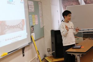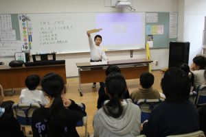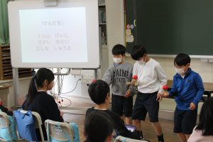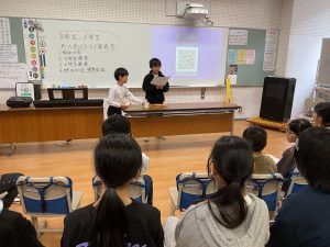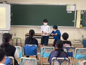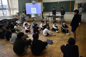 今年度、毎週金曜日、朝活動の時間に「わくわくトライ」という活動を行っています。自分の興味のあることを調べたり、ものづくりをしたり、技を極めたりしてきました。今日は、ペア学年で1年間取り組んできた成果を発表しました。
