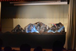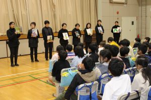 毎年恒例となっている劇団はらぺこさんによるペープサート「ことりをすきになった山」を鑑賞しました。子どもたちは、絵本の世界に引き込まれ、素敵な時間を過ごすことができました。また、劇団のみなさんから、おすすめの絵本なども紹介していただきました。