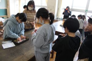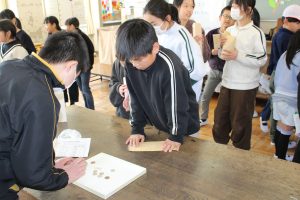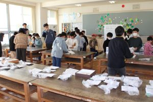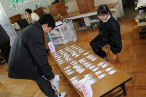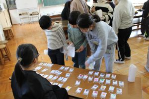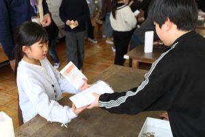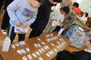 えがお学級の皆さんが、文具屋さんを開きました。鉛筆、消しゴム、ネームプレートペンなどの文具を事前に注文を取って、販売しました。多くの子どもや先生たちが、お客さんとして買いにきました。おまけとして、えがお学級の皆さんが作ったキーホルダーをもらうことができました。