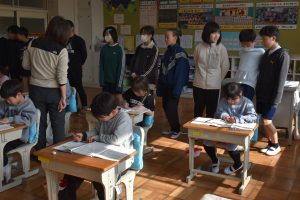 2月16日から2月27日を学び合い週間としています。どの学級でも、1年間の「聞く・話す」の集大成として取り組んでいます。年度末を迎え、一つ上の学年の授業を見せてもらい、新学年に向けての見通しをもつといく取り組みも行っています。6年生は、1年生の学習の様子を見せてもらい、頑張っている姿を温かく見守ってくれました。期間中、すべての学年で授業を見せ合っていきます。今回は、6年生が1年生の授業を参観した時の写真を掲載しました。