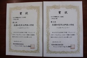 1年生は、「チャレンジスポーツ in ぎふ」の8の字縄跳びで、3分間で跳んだ総数 第3位  連続とび 第5位という素晴らしい成績でした。