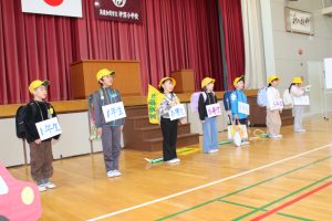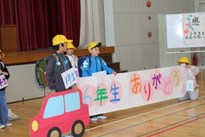 3月3日に行われた「6年生を送る会」当日は、1年生でのインフルエンザによる欠席者が多かったため、学年の発表ができませんでした。全員がそろった今日、朝の活動の時間を使って、1年生の発表を行いました。歌にのせて、6年生の素敵な姿を紹介してくれました。
