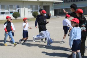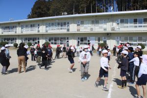 6年生と各学年の大縄跳びを通しての交流のクライマックスは、全校大縄跳びです。今日は、運動会の赤白に分かれて、大縄跳びを行いました。その後、先生たちも加わって、全校で大縄跳びを行いました。全員で跳ぶ大縄は、とても迫力があり、素敵な思い出となりました。