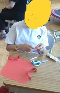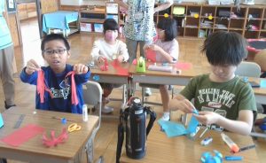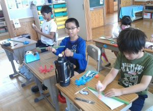 10月2日(木)ひがん花を作りました。4年生は、国語の「ごんぎつね」に、ひがん花が出てきますね。