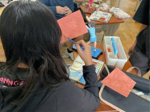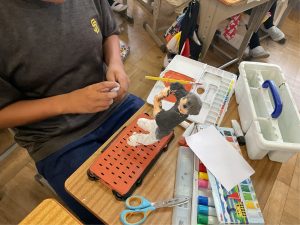 思い思いの形や姿に、自分なりの工夫をしながら表現していました。絵の具や画用紙を使い、楽しみながら活動ができました。