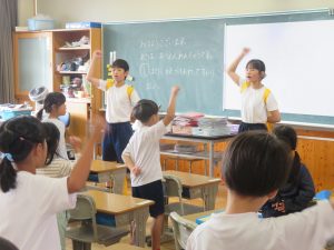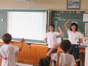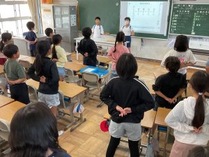 2週間後に運動会を控え、校内でも競技の練習や係の打ち合わせ等が活発になってきています。今朝は、応援団が各教室に行き、応援の仕方を教える活動が始まりました。技能や体力の向上、競技の勝ち負けだけでなく、目標に向かって自主的・自治的に活動を進めていく力も、運動会で求める姿です。