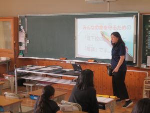 前期の締めくくりと後期のスタートに当たり、通学班集会を行いました。新しいリーダーのもと、並び方や登下校中の注意事項、通学路上の危険個所について改めて確認をしました。後期も、前期同様、登下校中の事故0を目指して、安全第一で登下校できるよう、指導していきます。