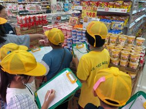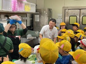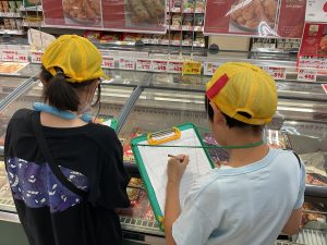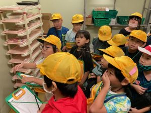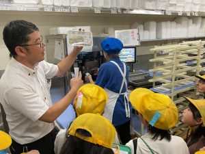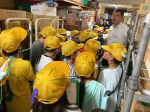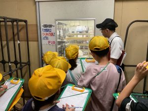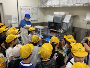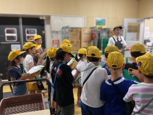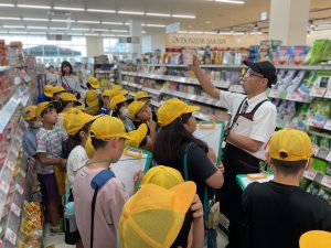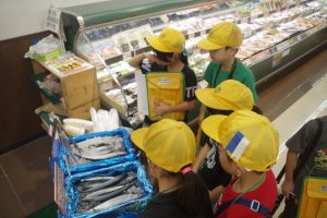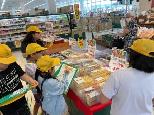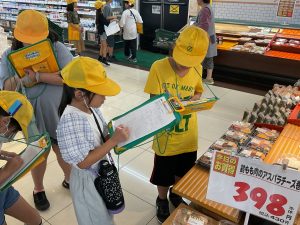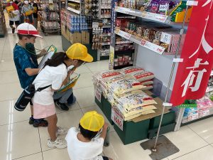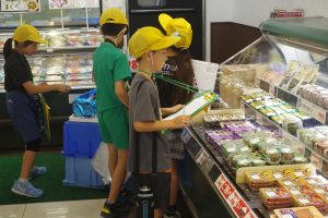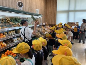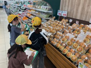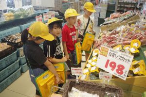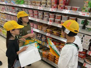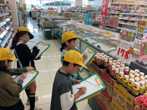 8・9日にバロー富加店へ社会科見学へ行ってきました。普段行っているスーパーマーケットですが、「たくさんのお客さんに来てもらうためのくふうを見つける」という目線で行くと見え方が変わってきました。いつもは見られないバックヤードも見せていただき、お仕事の様子や設備について学ぶことができました。地域のお店のご協力をいただき、実際に目で見て学習できるとてもよい時間となりました。ぜひ一緒にスーパーマーケットに行かれた時には、どんな工夫があるか話題にしてみて下さい。