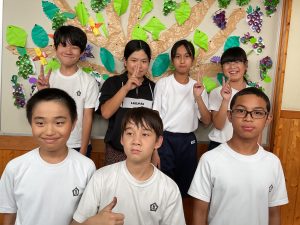 手際よく くるくる巻いていき、思い思いにぶどうの形を考えて貼っていきました。