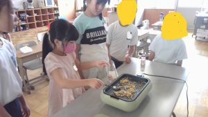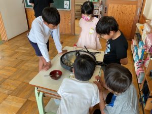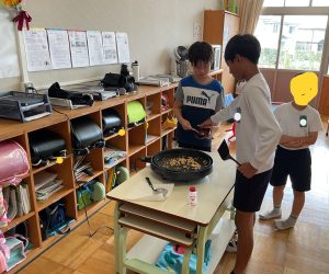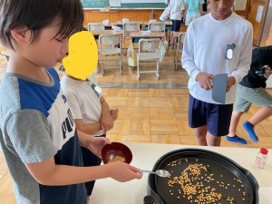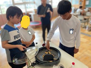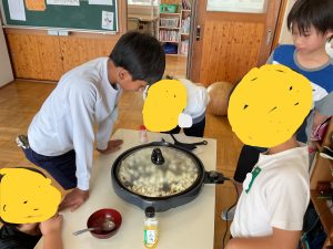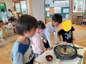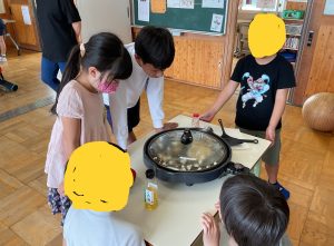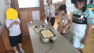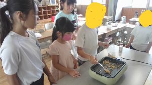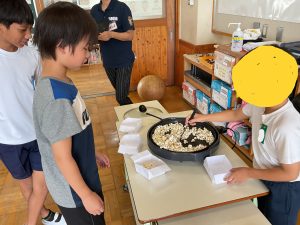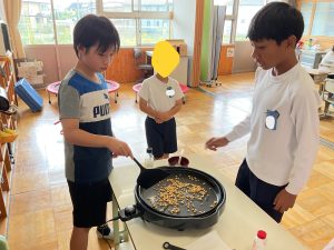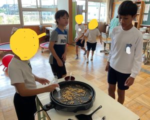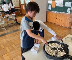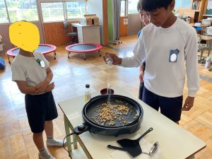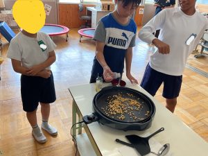 10月10日「前期がんばったね」会でポップコーンを作りました。