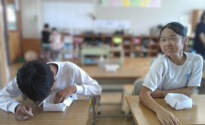 はじけるのを待つ間に、一人ずつがんばったこと、楽しかったことを発表しました。