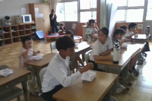 「プールが楽しかった」「算数をがんばった」「鬼ごっこが楽しかった」など、自分のがんばりを発表することができました。