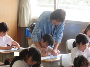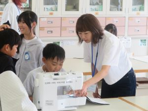 地域学校協働活動の一環として、スクールサポーターの皆さんに授業支援をしていただいています。今回は、6年生のミシン実習(家庭科)と、2年生のカッターナイフ実習(図工)の支援です。技能の習熟や、安全の確保にとても助かっています。