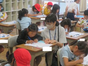 今日も、2年生図工(カッターナイフ実習)に支援に入っていただきました。すでにサポーターさん方が教室にいることが、「特別」ではなく「日常」になっています。技能指導だけでなく、認め励ましの言葉をたくさんかけていただけるので、子ども達の自信にもつながっています。