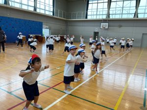 子どもたちは、毎日運動会の練習に励んでいます。ダンスもだんだん上手になり、笑顔で踊れる子が増えてきました。入場や退場、隊形移動の仕方なども少しずつ覚えてきました。運動会当日には、練習の成果をのびのびと発表する姿をお楽しみください。