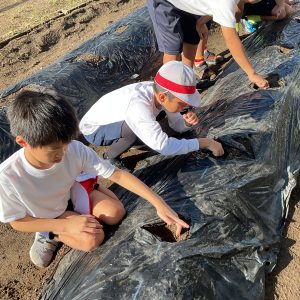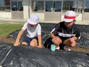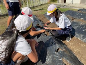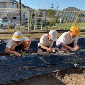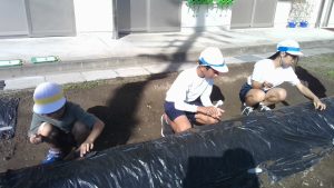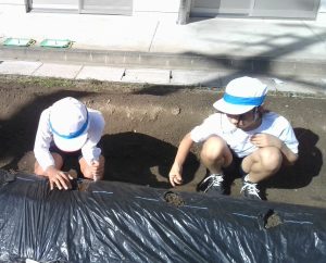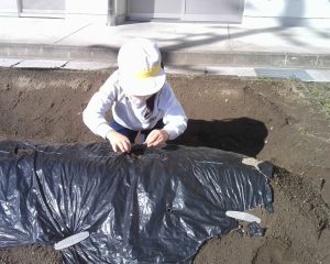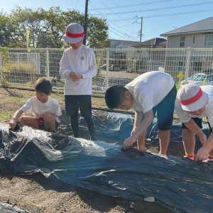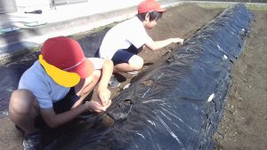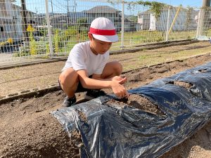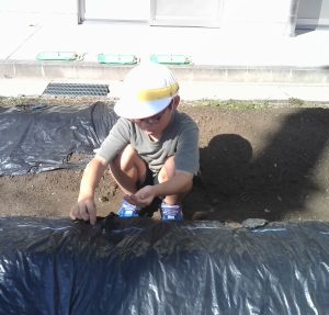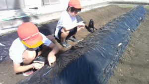 10月16,17日(木、金)に、だいこんの種をまきました。