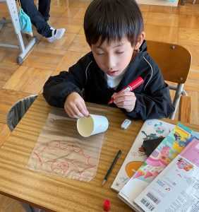 10月30日(木)紙コップとビニール袋でハロウィン工作をしました。