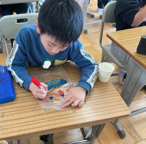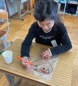 おばけやかぼちゃ、コウモリやネコなど、好きな絵を描いて作りました。