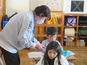 本日も、2年生図工、カッターナイフを使った授業のサポートに入っていただきました。回を重ねるたびに児童の技能も向上しています。おかげさまで、怪我をする児童もなく、安全に学習を進めることができています。