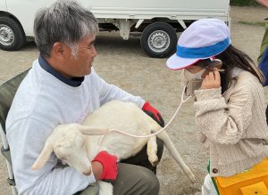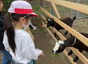 ヤギさんの心音と自分の心音を聞き比べたり、エサやり体験をしたりしました。