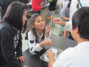 4年1組の理科では、「ものの温度と体積」の学習を通して、子どもたちが自分の予想を立て、実験の結果を友達と比べながら考察する姿が見られました。ICTを用いてグループごとに意見を出し合い、結果の違いに気づいてさらに確かめようとするなど、主体的に学ぶ姿がとても印象的でした。
